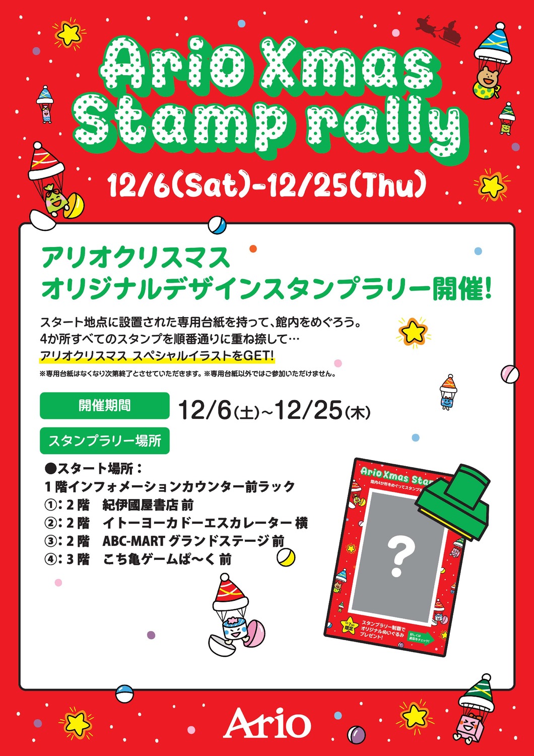アリオクリスマス オリジナルデザインスタンプラリー開催!