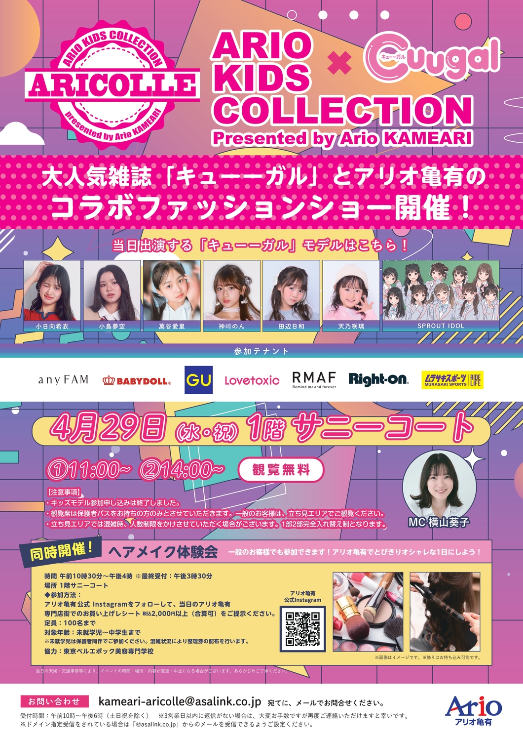 大人気雑誌「キューーガル」とアリオ亀有のコラボファッションショーを、今年も開催いたします!