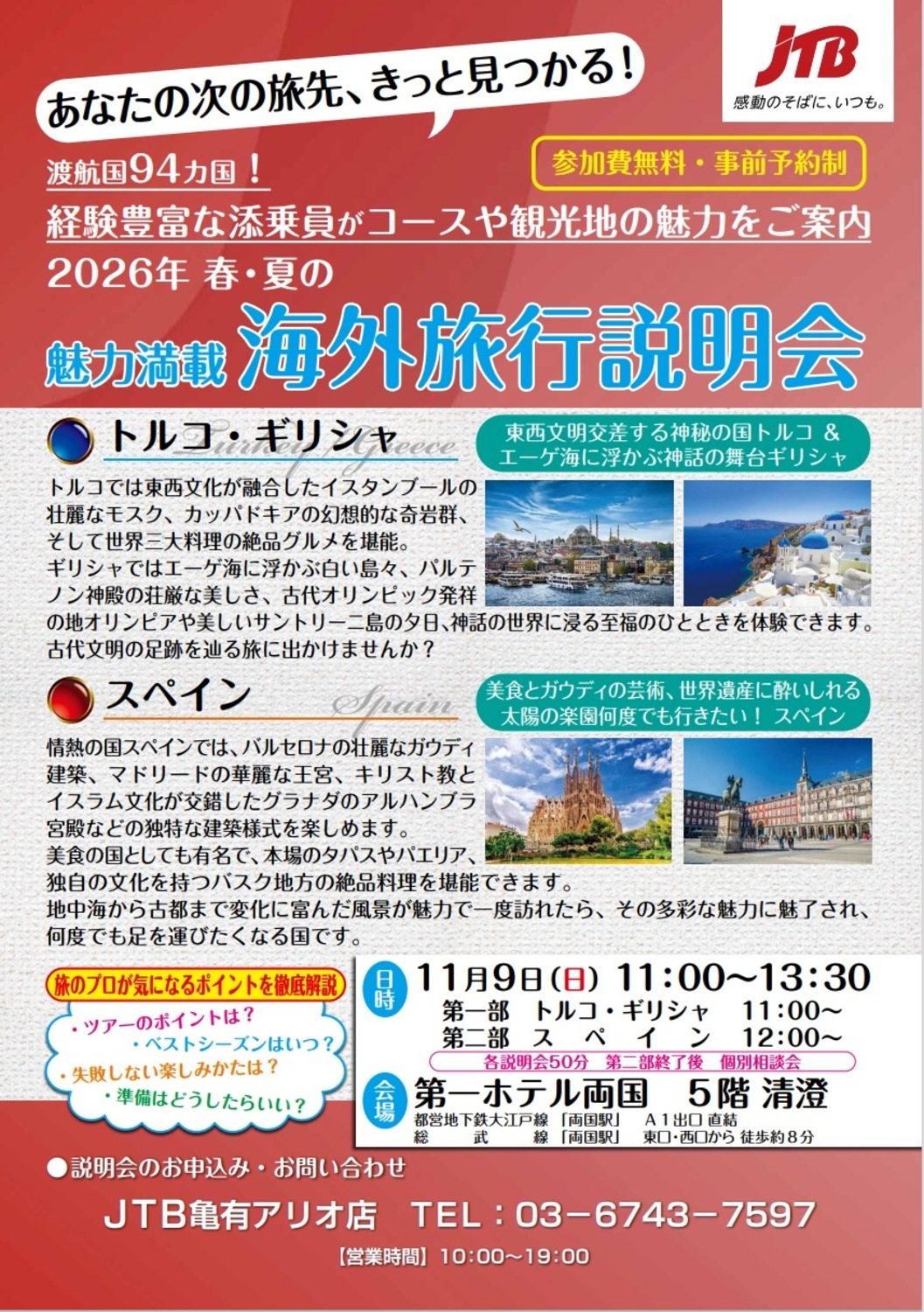 ✨11/9(日)2026年春・夏の海外旅行説明会✨