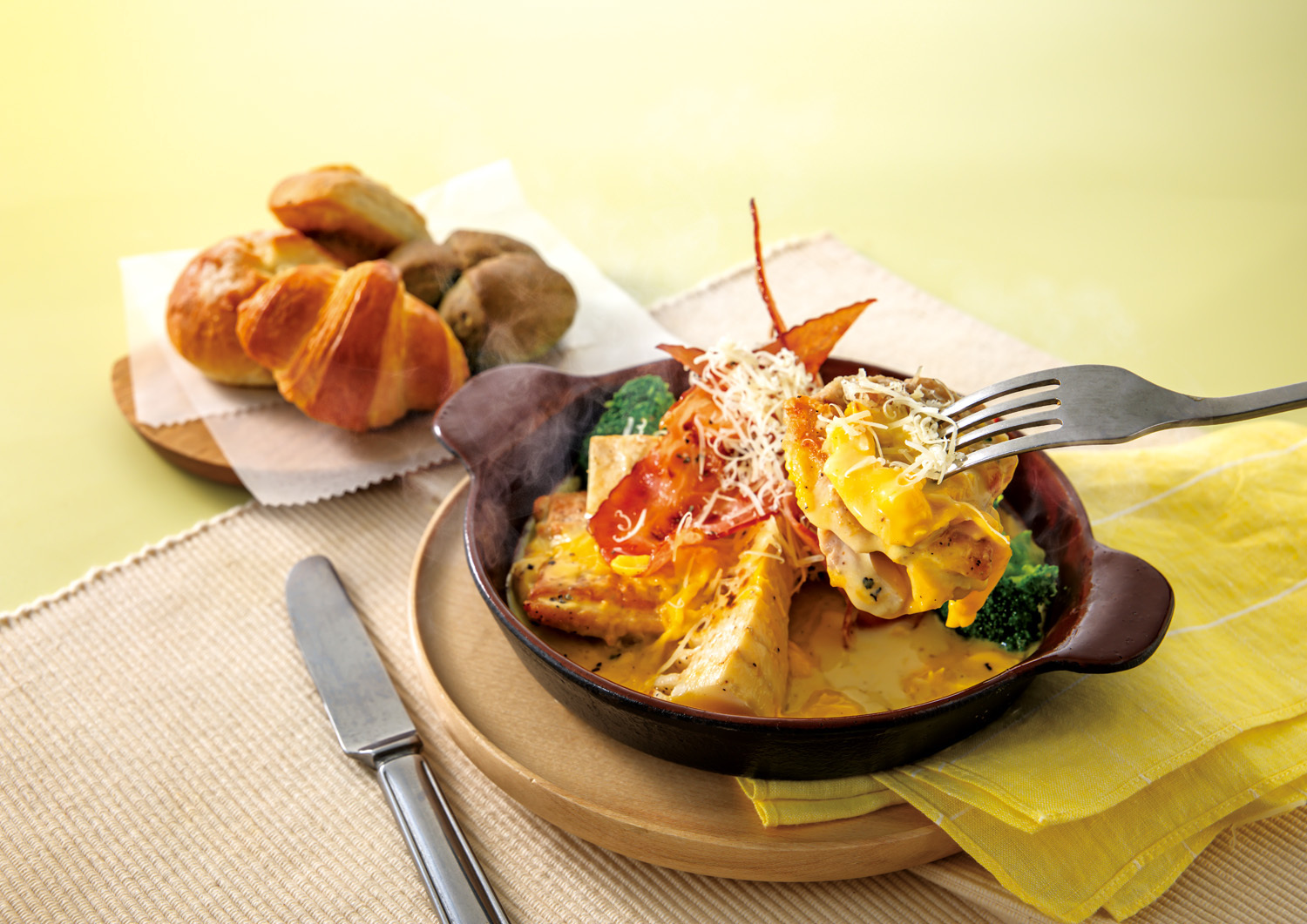 春らしいたけのこのシャキッとした食感と、仕上げにクリスピーベーコンの香ばしさがアクセント。