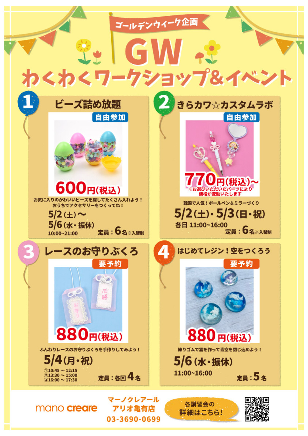 ①ビーズ詰め放題 5/2(土)〜5/6(水・振休) 自由参加